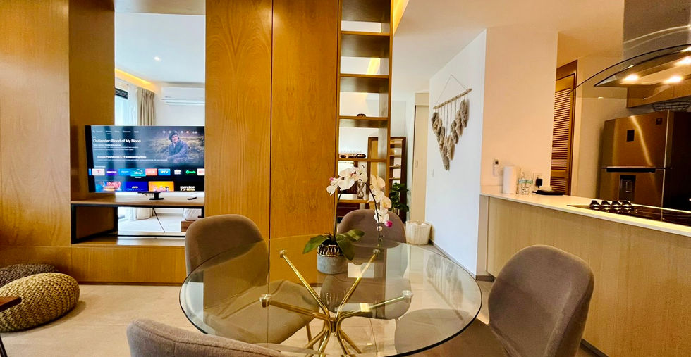 "Escápate a este encantador y romántico departamento con terraza privada y vista al mar. Disfruta de una decoración acogedora y una cómoda cama king size, ideal para una estancia inolvidable en pareja."